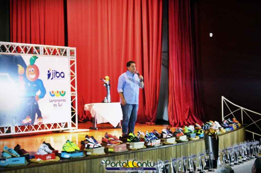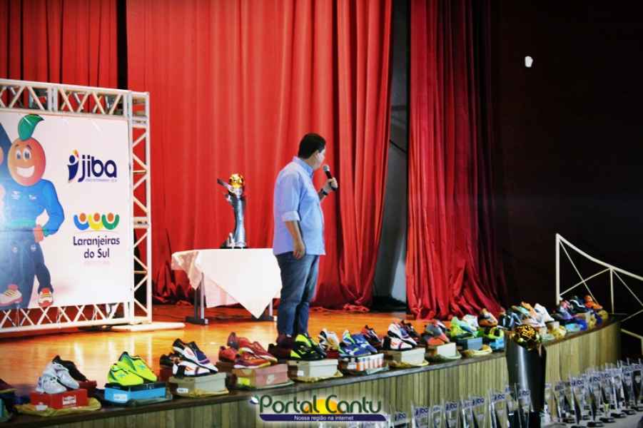 Além da entrega da premiação aos vencedores do JIBA, a Secretaria de Esporte prestou homenagem aos representantes esportivos, Associações, Clubes de Serviços, Academias, parceiros do esporte e fez também a entrega de chuteiras para os alunos da Escola de Futebol do Furacão.