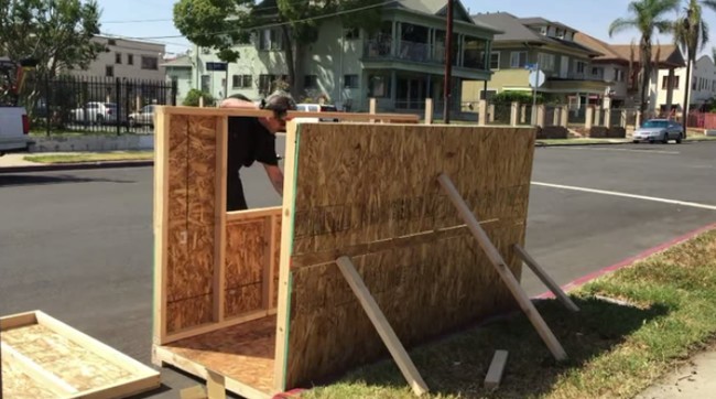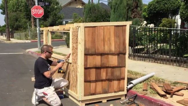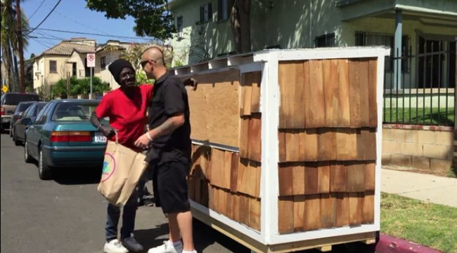 Elvis construiu o pequeno abrigo na frente do seu prédio. Quando a polícia de Los Angeles ficou sabendo sobre o projeto, ela apoiou completamente. O único pedido era que Smokie concordasse em mudar o abrigo de lugar a cada 72 horas. Por isso, a casinha tem rodinhas para facilitar o transporte. (Com Awebic)