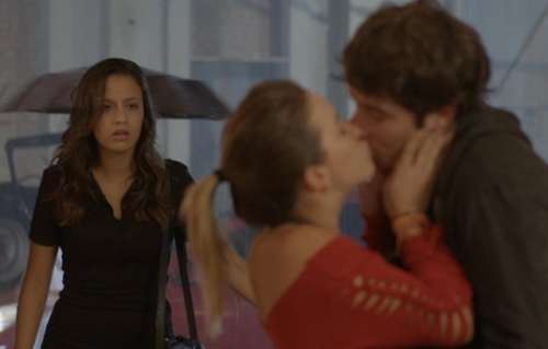 Claro que depois dessa rola mais um beijo, né?! Mas é justamente na hora que Tainá (Lara Coutinho) chega. (Com Gshow)