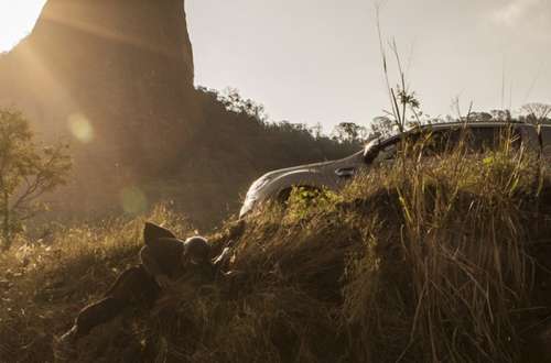 Durante o momento de tensão, Carlos joga o carro contra a moto do cunhado, que perde o controle e cai ribanceira abaixo.