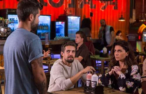 Mario sai batido da oficina e vai direto para a mesa da amiga, interrompendo o jantar do casal. "Oi, Alice. A gente pode conversar?", diz o motociclista, que em seguida se dirige a César: "Preciso levar um papo sério com ela". (Com Gshow)