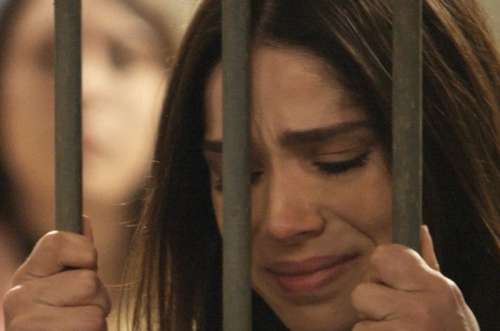 Francesca tenta impedir que a filha seja levada para a cadeia, mas não adianta, e Shirlei é conduzida ao camburão.