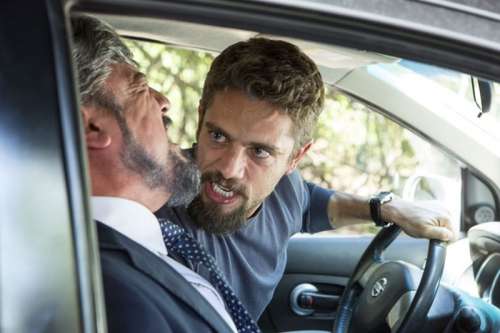 "Você vacilou, foi incompetente e quase acabou com tudo! Já imaginou se eles resolvem abrir o container e descobrem as latas de sardinhas recheadas de dólar e euro, imbecil? Você quase me coloca no meio do furacão. Idiota", explode César que, e em seguida, enfia uma faca na perna do parceiro de crime. Para piorar, o japonês é expulso do carro no meio da rua, com a perna sangrando. (Com Gshow)
