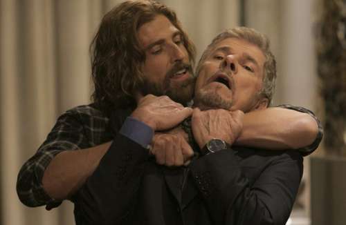 Tião tenta se soltar, e Pedro diz para ele implorar por sua vida. "Prefiro que você apodreça na cadeia, longe do teu grande amor e da tua filha!", provoca o poderoso. "Pois acho que vou ser condecorado por livrar o mundo de um verme como você! E aí? Pronto pra morrer?", pergunta o amado de Helô. (Com Gshow)