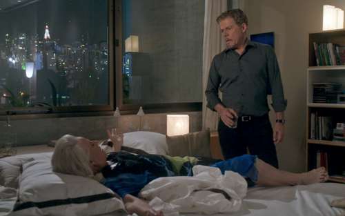 Os dois discutem e ele manda a mulher tomar banho para tirar o cheiro de produto de limpeza e diz que não quer chamar garotas de programa todas as noites, que ela irá servi-lo.