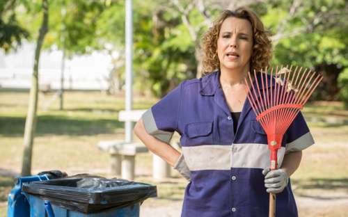 Observada por Lázaro (João Vicente de Castro), Léo Régis (Rafael Vitti) e supervisionada por um fiscal da companhia de lixo, Néia (Ana Beatriz Nogueira) promete muita confusão e diversão no capítulo de Rock Story desta sexta dia 24.