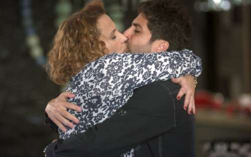 Léo (Rafael Vitti) e Yasmin (Marina Moschen) não acreditam no namoro da mãe e, para provar que é verdade, Ramon e Néia dão um belo de um beijão!