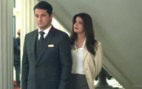 O concierge do hotel, no entanto, dá logo um corte na assistente do empresário: