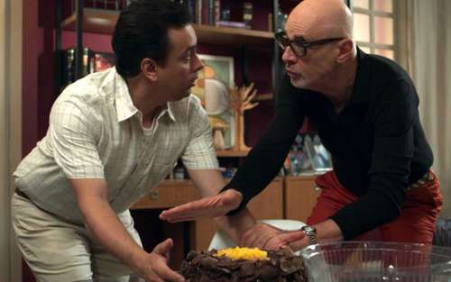 O garçom diz que ela pode estar enveneda como vigança contra Antônia (Vanessa Giácomo). A dupla decide jogar o bolo descarga abaixo e Nelito comenta: