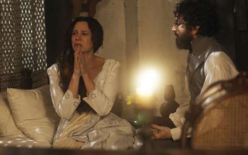 Amália (Vanessa Gerbelli) se lembra de mais detalhes de seu passado e começa a chorar.