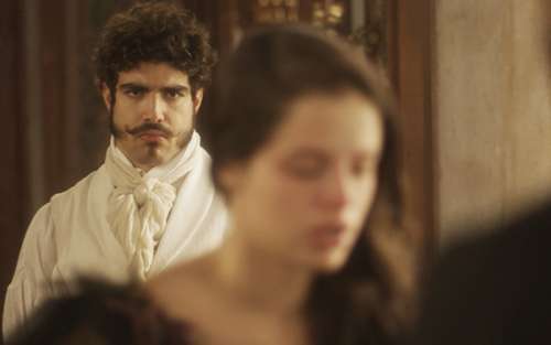 E acaba ouvindo a amante confessar algumas de suas armações para Chalaça (Romulo Estrela).