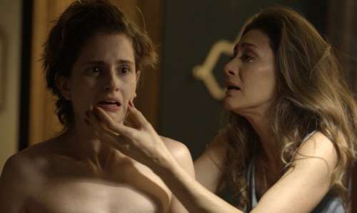 Joyce (Maria Fernanda Cândido) entra no quarto neste exato momento e presencia os lindos cabelos de uma filha que tanto idealizou caindo no chão...