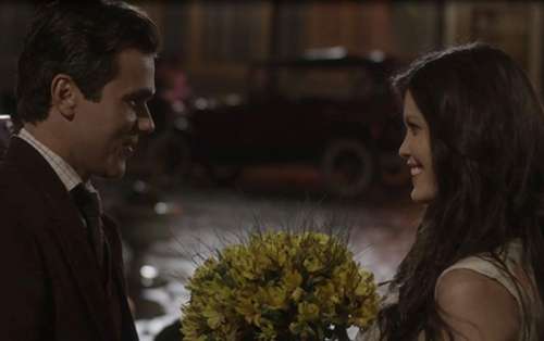 Como prometido, os dois saem e ele entrega um belo ramalhete de flores para ela, que fica encantada. Quem vê de longe os dois juntos e fica com bastante raiva é Matias. (Com Gshow)