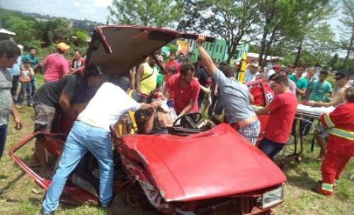 Da batido resultou em danos matérias nos dois carros e ferimentos no condutor do Uno que ficou preso às ferragens, dando muito trabalho aos socorristas da Ecocataratas para retirada da vítima, que apesar da gravidade dos ferimentos estava consciente.