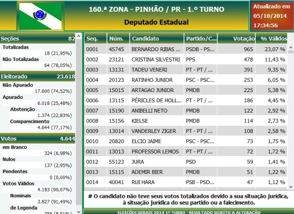 Pinhão também com suas primeiras urnas apuradas.
