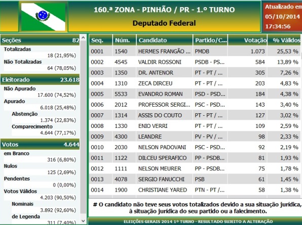 Números inciais para Deputado Federal mostram Frangão.