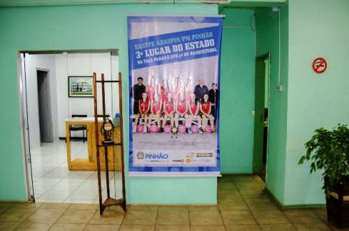 As meninas do Basquete sub-14 foram homenageadas com um banner que está sendo exposto no hall de entrada da Prefeitura Municipal.