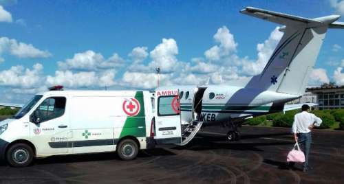 Pela UTI móvel da Secretaria Municipal de Saúde para o aeroporto de Guarapuava.
