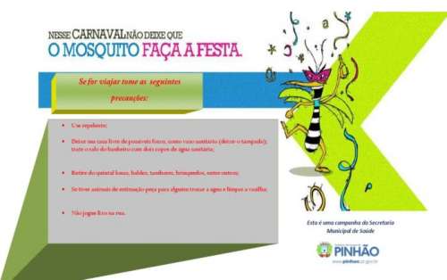 Como prevenção e combate ao Aedes aegypti, mosquito transmissor do mosquito, a Secretaria Municipal de Saúde esta com uma campanha de combate para o feriado de Carnaval, onde muitas pessoas viajam.