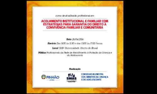 O programa conta com a Historia do Acolhimento Institucional; Família brasileira: aspectos históricos, sociológicos e antropológicos; Direito de Família; Direito à convivência Familiar e Comunitária;