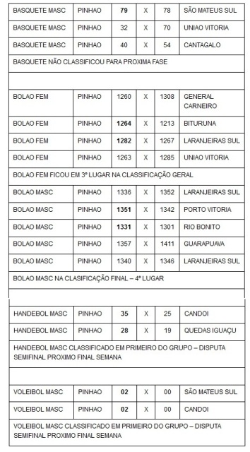 O município de Pinhão conseguiu ótimos resultados no primeiro final de semana dos jogos abertos do Paraná, realizado em Guarapuava.