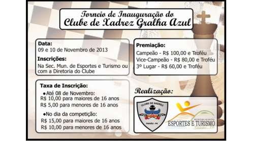 O torneio é uma realização do Clube de Xadrez de Pinhão e da Secretaria Municipal de Esportes.